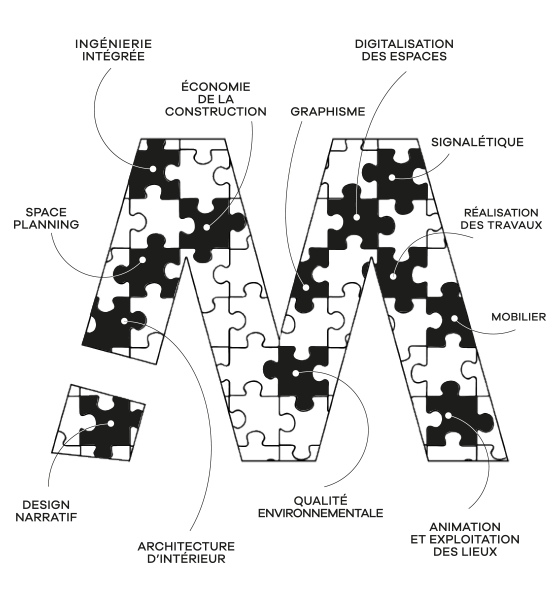 Grâce à une maîtrise technique totalement intégrée et une gamme de compétences très diversifiées – du design narratif à l’ergonomie, de l’architecture d’intérieur au digital, de la signalétique au mobilier – Myah conçoit des espaces à haute qualité d’usages et de performance environnementale.